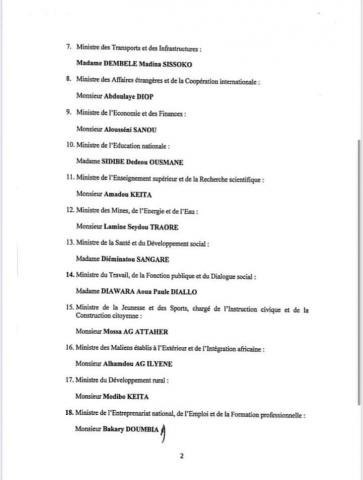 مالي.... الافراج عن تشكيلة الحكومة الجديدة (وثيقة) | البشام الإخباري