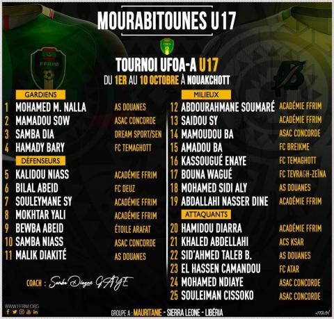 وضمت التشكيلة 23 لاعباً اختارها المدرب استعدادا لبطولة غرب افريقيا لكرة القدم لفئة اقل من 17عاما والتي ستنظم في موريتانيا بداية من شهر اكتوبر المقبل .