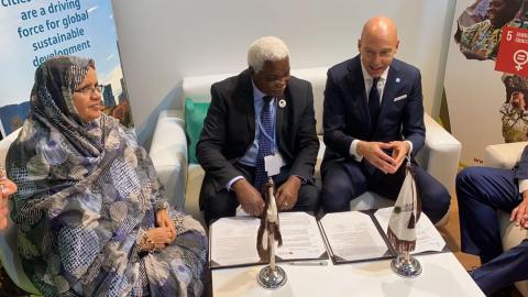 كما أشرفت رئيسة المدن والحكومات المحلية المتحدة بإفريقيا السيدة فاطمة بنت عبد المالك على توقيع اتفاقية بين المنظمة والمركز العالمي للتكيف المناخي GCA، ستحصل من خلالها المدن والحكومات الإفريقية على دعم لبرامجها وخططها التنموية.