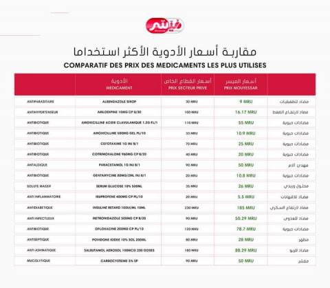 مقارنة أسعار الأدوية الأكثر استخداما لدى نظام الميسر والقطاع الخاص