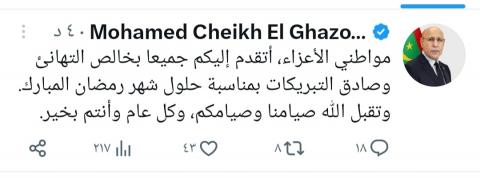 مواطني الأعزاء، أتقدم إليكم جميعا بخالص التهانئ وصادق التبريكات بمناسبة حلول شهر رمضان المبارك.