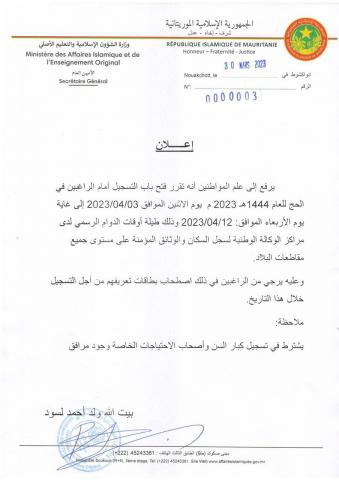 ودعت الوزارة الراغبين في التسجيل لقرعة الحج للتوجه إلى مراكز وكالة سجل السكان والوثائق المؤمنة مصحوبين ببطاقات تعريفهم.