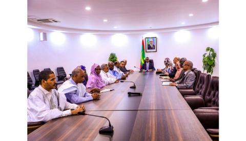 جرى اللقاء بحضور معالي وزير الداخلية واللامركزية السيد محمد أحمد ولد محمد الأمين، ومديرة ديوان الوزير الأول السيدة عيش فال فرجس، و مستشارة الوزير الأول للشؤون السياسية، السيدة هند بنت عينينا و مستشار الوزير الأول المكلف بالإعلام و الاتصال السيد أحمد ولد السالك ومستشار الوزير الأول المكلف بالوظيفة العمومية وعصرنة الإدارة و الإصلاح السيد جالو عمار امادو و مستشار الوزير الأول المكلف باللامركزية و الاستصلاح الترابي السيد محمد المختار محمد عبد الله بلاتي.