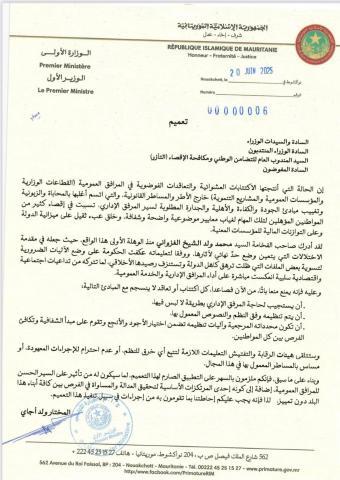 أصدر الوزير الأول المختار ولد اجاي اليوم الجمعة تعميماً إلى جميع القطاعات الحكومية بمنع الاكتتاب الفوضوي العشوائي..