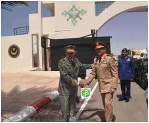 واستقبل رئيس هيئة الأركان العامة للقوات المسلحة السعودية بمطار نواكشوط الدولي-أم التونسي من طرف قائد الأركان العامة للجيوش، الفريق محمد ولد الشيخ محمد أحمد وسفير المملكة العربية السعودية المعتمد لدى موريتانيا سعادة السيد هزاع بن ضاوي لمطيري.