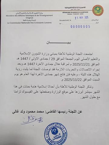 وقالت الوزارة في بيان صادر عنها إن غدا السبت الموافق 22/11/2025 هو فاتح شهر جمادى الآولى لهذا العام.