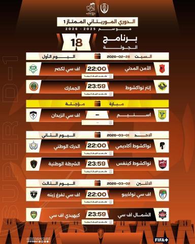 وستكون المباراة الثانية بين انتر نواكشوط الموجود في المركز قبل الأخير والجمارك ثاني الترتيب .